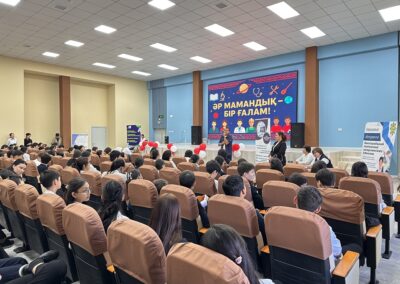 Мамандықтар апталығы аясында түрлі форматтағы іс-шаралар: кәсіби шеберлік байқаулары, мамандықтар жәрмеңкесі, кездесулер ұйымдастырылды.