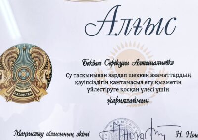 Су тасқынынан зардап шеккен азаматтардың қауіпсіздігін қамтамасыз ету қызметін үйлестіруге қосқан үлесі үшін колледжіміздің белсенді, ерікті студенттеріміз Р-АТС 9/21-01, ОДД 9/21-01 топ студенттері Алмадыров Мирас, Алтыналиев Бекзат Маңғыстау облысының әкімінің Алғыс хатымен марапатталды.