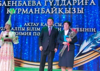 Жас ұрпақты оқыту және тәрбиелеу ісіндегі елеулі табыстары үшін “Ы. Алтынсарин” төсбелгісімен М.Тынышпаев атындағы Ақтау көлік колледжнің ұлағатты ұстазы, педагог-шебер, химия пәнінің оқытушысы Баенбаева Гулдарига Курманбаевна ие болды.